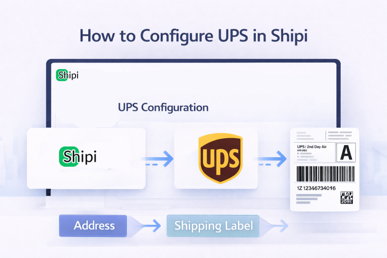 This guide explains how to integrate UPS with Shipi to calculate live shipping rates, generate labels, and automate UPS shipments. Go to Shipping Accounts Select UPS Step 1: UPS Account Information This section connects your UPS account with Shipi. 🔹 Shipping Account Name Value Explanation Any name Internal reference only Example UPS– International, UPS – […]