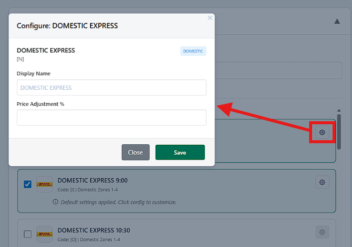 | Price Adjustment (%) | Increase or decrease DHL Express rate |