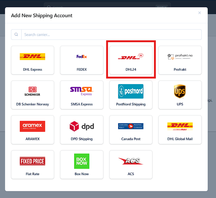 - Select DHL24 from the carrier list