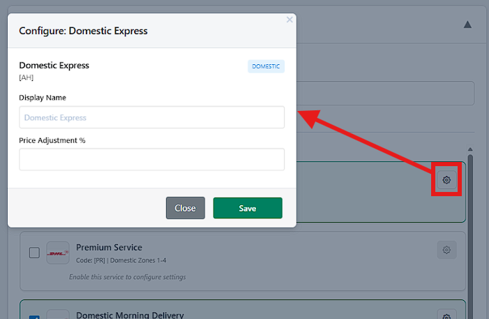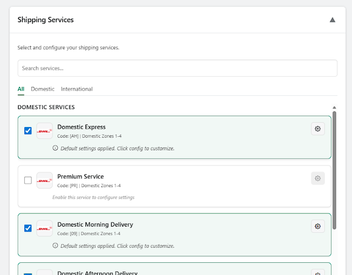 For each enabled service, Shipi allows customization.