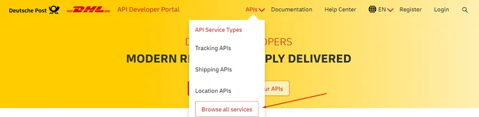 1. Access the DHL Developer Portal and log in with your new username and password.