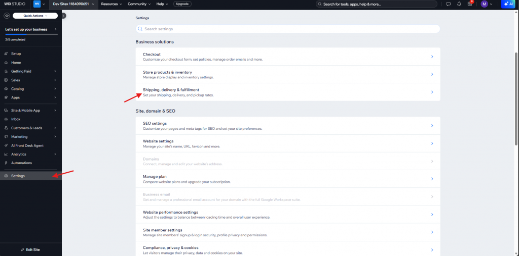 - Go to Wix > Settings > Shipping, Delivery & Fulfillment.